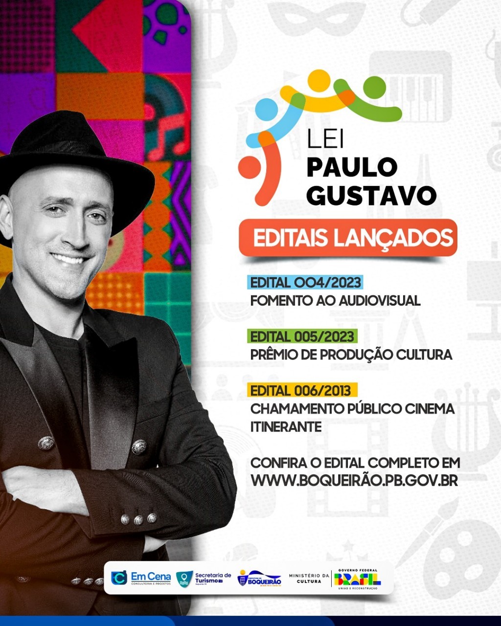 A prefeitura Municipal de Boqueirão, através de sua Secretaria de Turismo e Departamento de Cultura, divulga os novos editais para a lei Paulo Gustavo.
